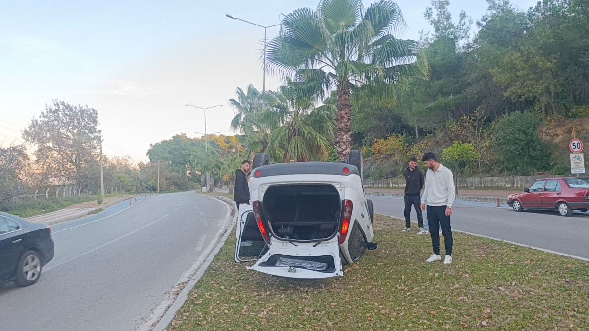 Antalya’nın Manavgat ilçesi Sorgun Mahallesi Titreyengöl Caddesi’nde Titreyengöl istikametinden Uygulama Oteli istikametine seyir halindeki Hüseyin Sarı’nın kullandığı otomobil, Herdford kavşağına yaklaştığı sırada sürücüsünün direksiyon hakimiyetini kaybederek refüj bordürüne çarptıktan sonra refüje ters döndü.