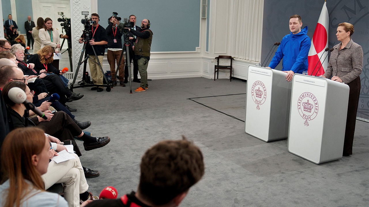 Grönland Başbakanı Jens-Frederik Nielsen ve Danimarka Başbakanı Mette Frederiksen, yarın Beyaz Saray’da gerçekleştirilecek Grönland toplantısı öncesi Danimarka’nın başkenti Kopenhag’daki başbakanlık binasında bir araya geldi.