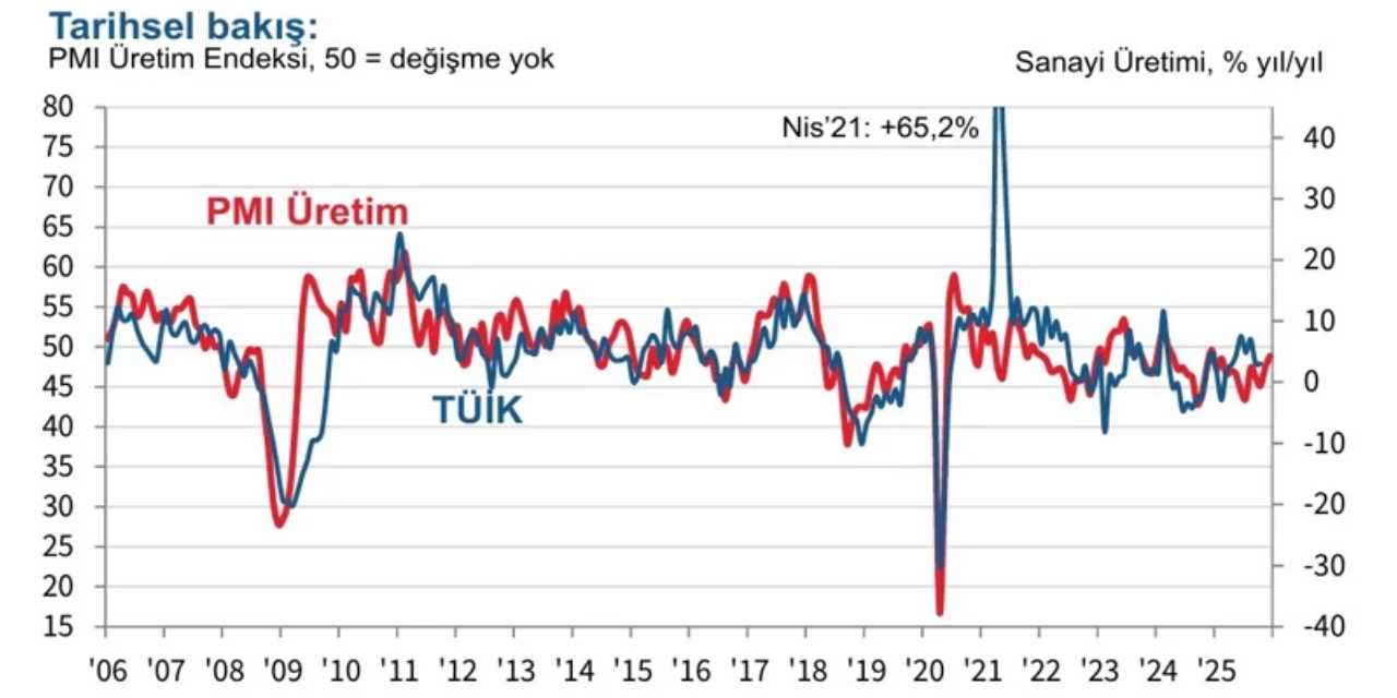 “Son iki aydaki artışlarla birlikte imalat sektöründeki toparlanmanın devam ettiğini gösteren Satın Alma Yöneticileri Endeksi (PMI), Aralık ayında 2025’in en yüksek seviyesine ulaştı.